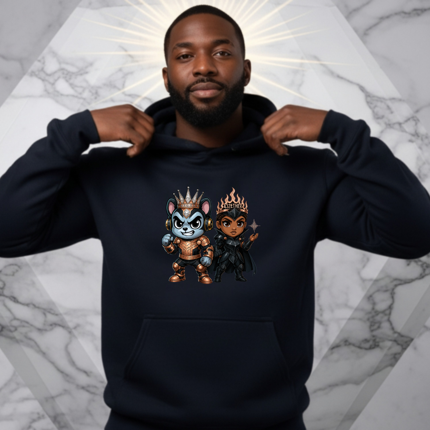 Printed on a premium medium-heavy hoodie, the smooth cotton-poly blend enhances every detail: the metallic highlights, armor textures, flame glow, and the duo’s commanding posture. Cozy enough for daily wear, bold enough for collectors, powerful enough for Ascendants.
