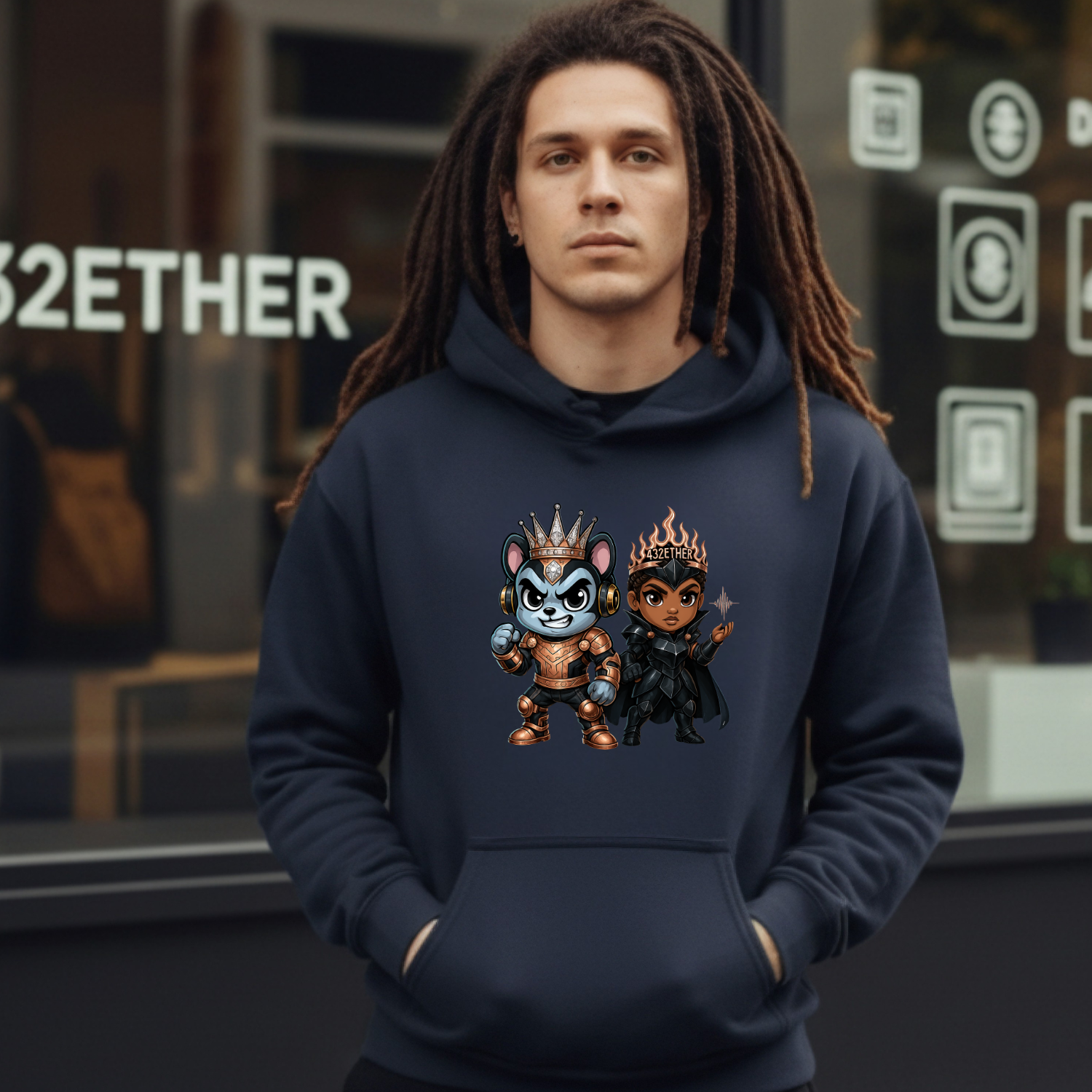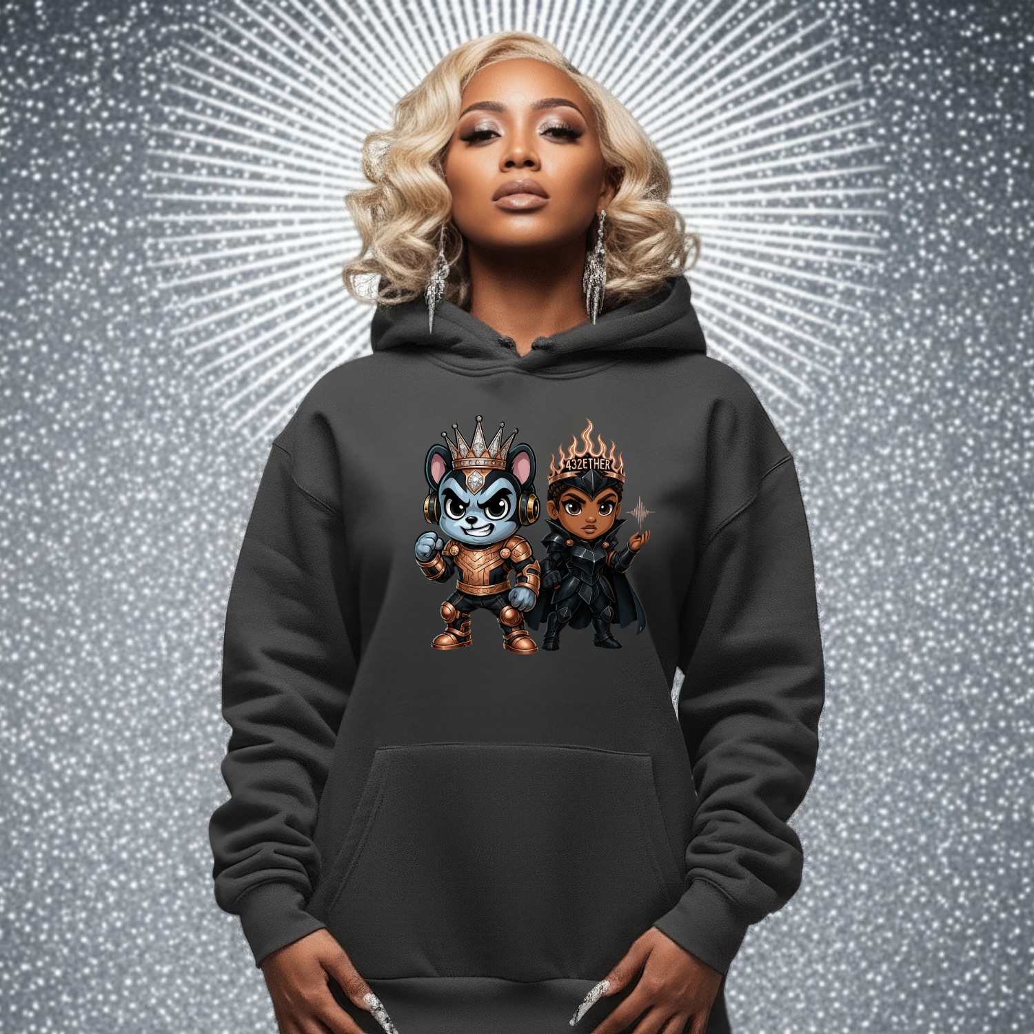 Unleash your higher power with the 432ETHER “Battleborn Ascendants” Hoodie — a striking duo piece featuring the Bronze King and the Flame-Crowned Warrior Queen at full cosmic strength.