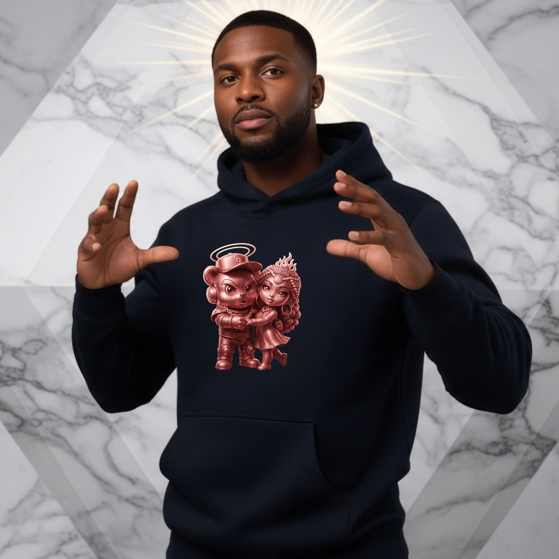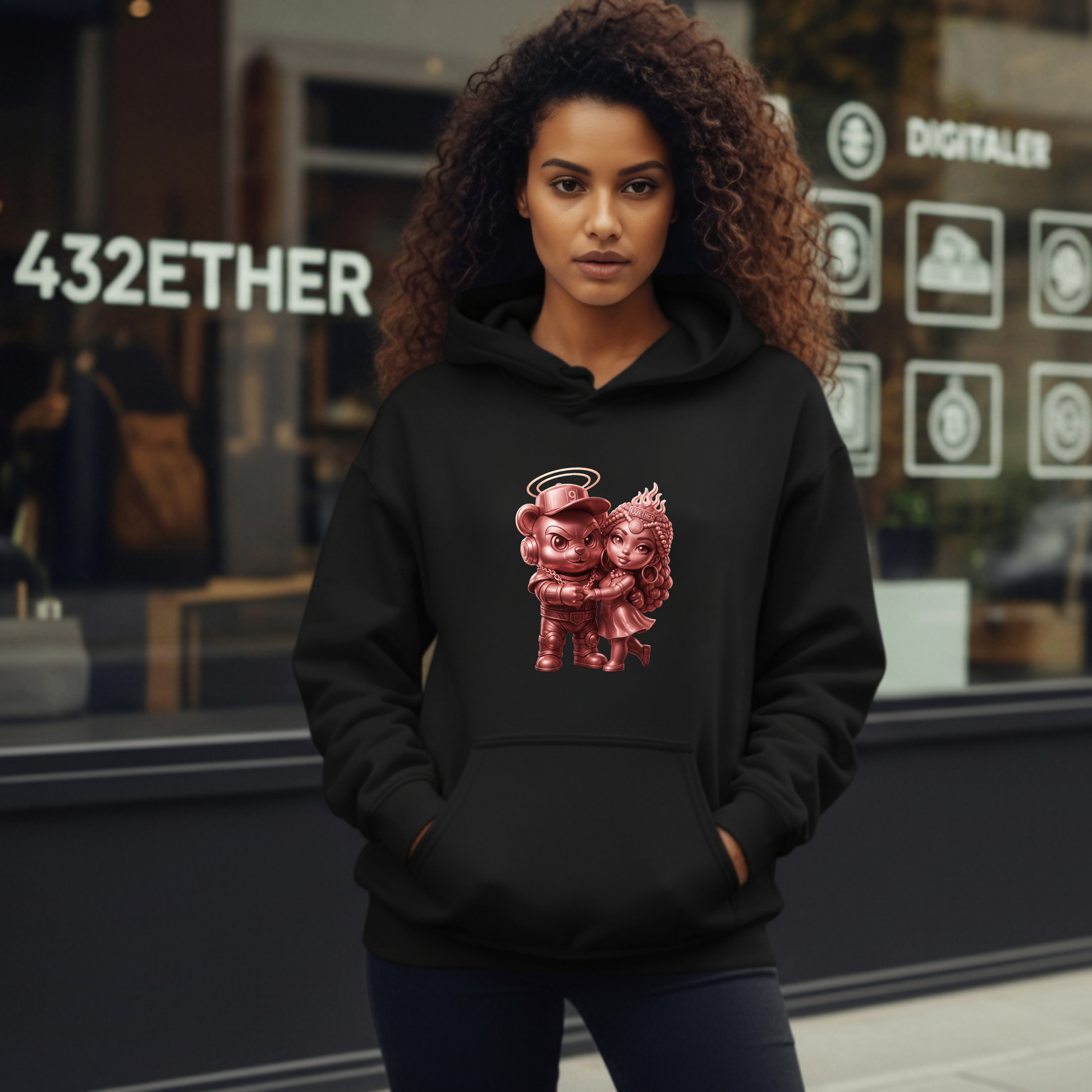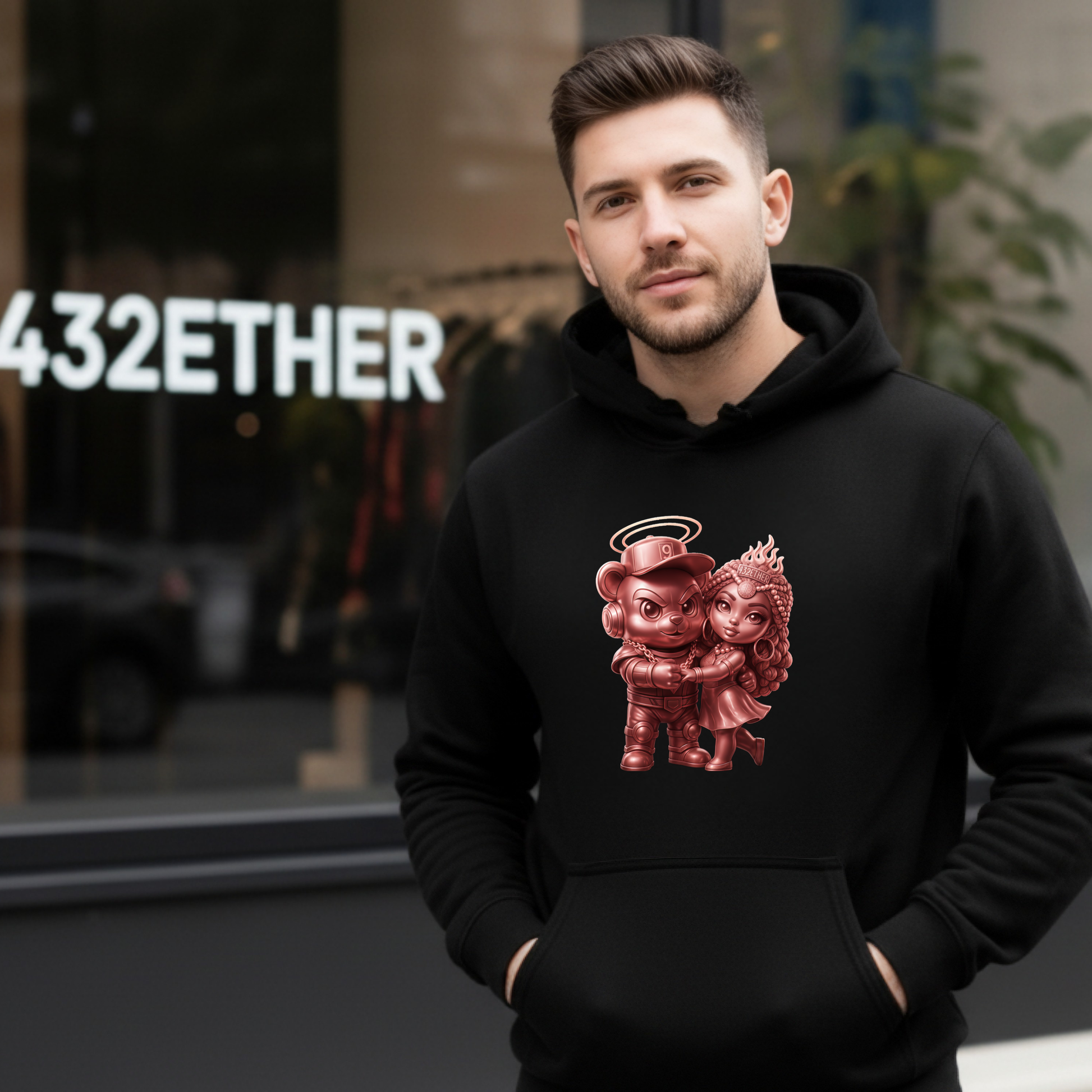 Step into a higher frequency of love, unity, and power with the 432ETHER “Rose-Copper Lovers Ascendants” Hoodie — a sculpted metallic masterpiece capturing the divine bond between two elevated souls.