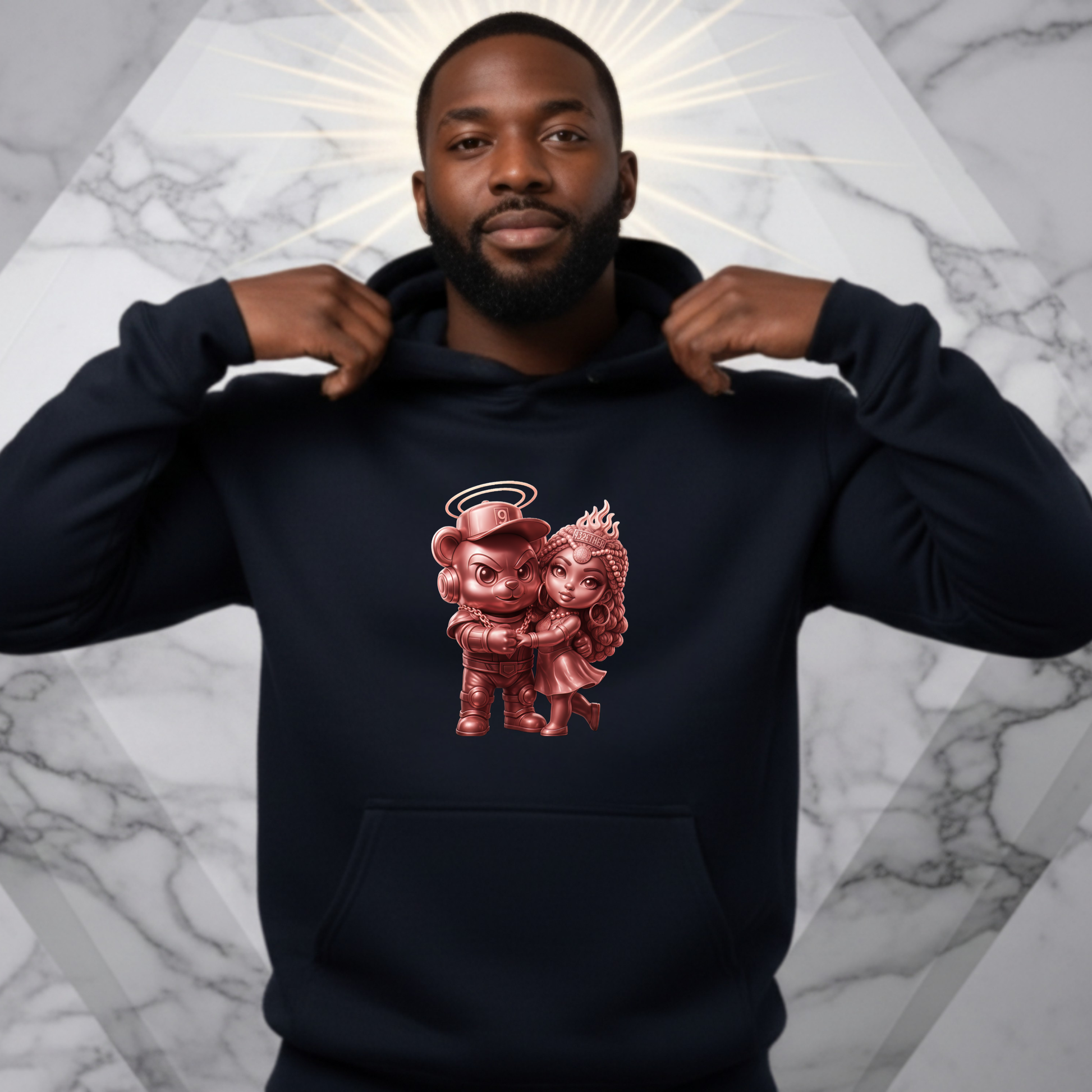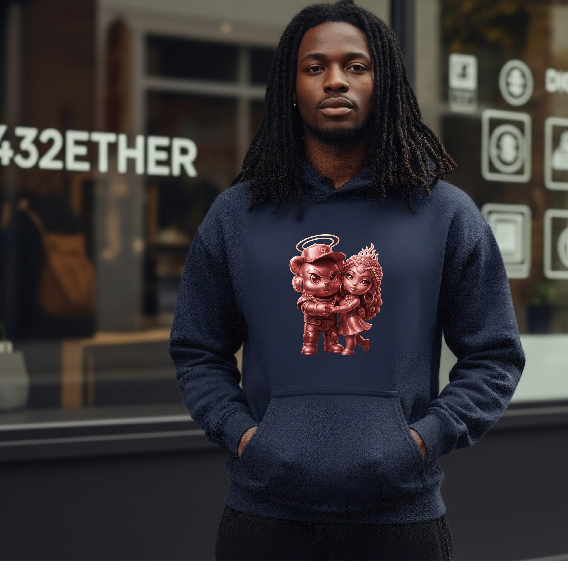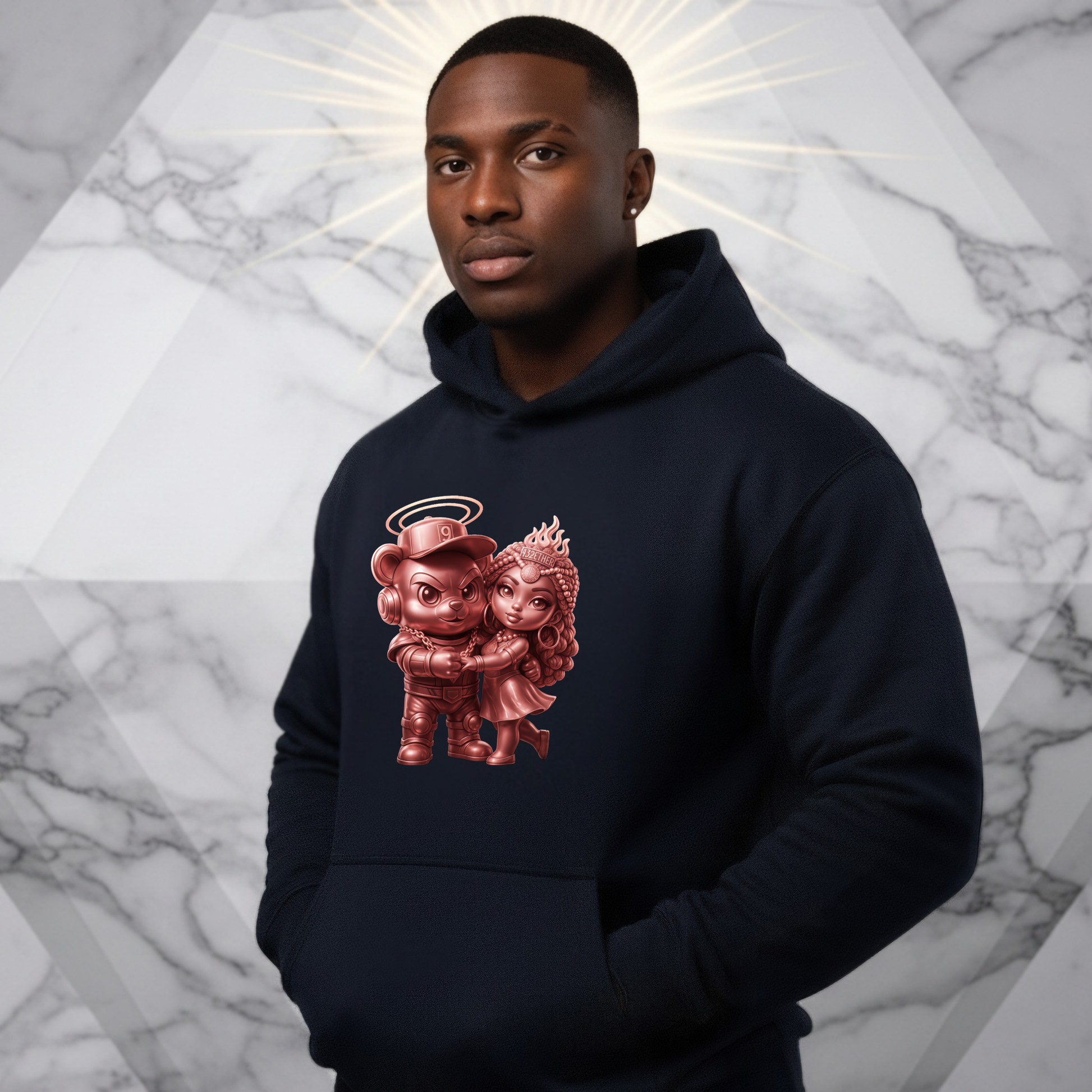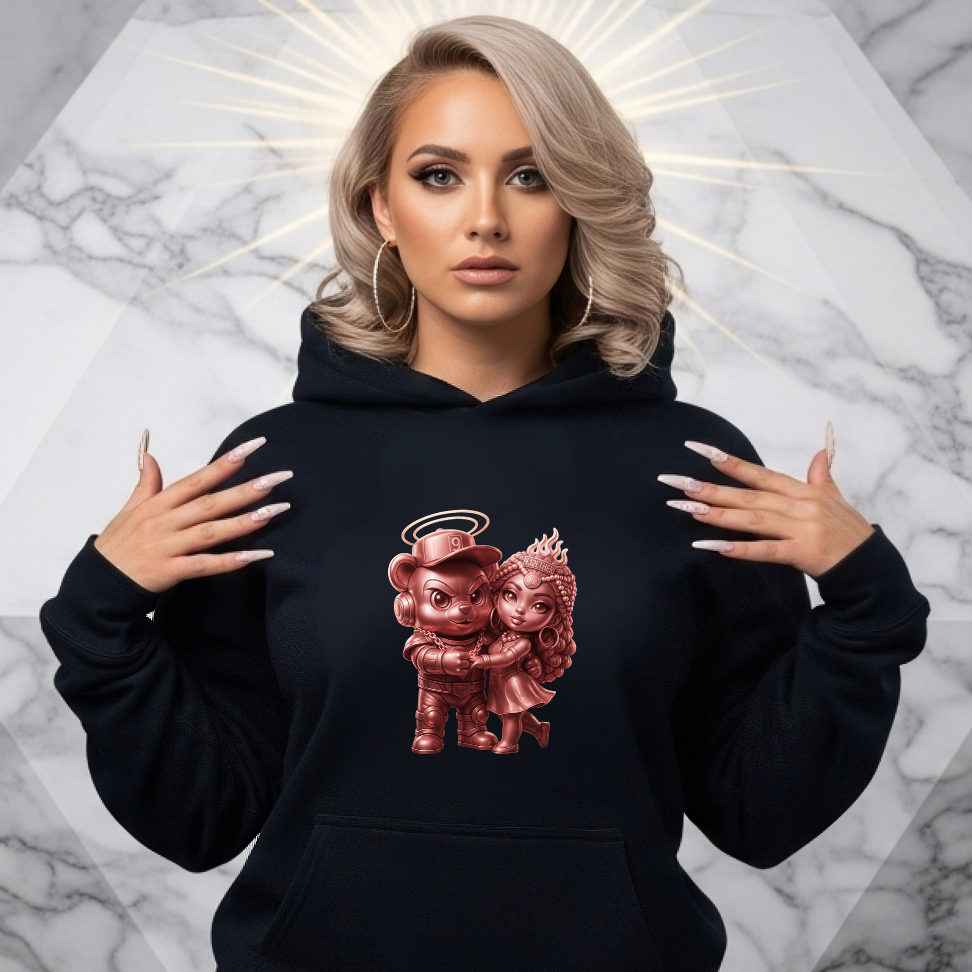 Step into a higher frequency of love, unity, and power with the 432ETHER “Rose-Copper Lovers Ascendants” Hoodie — a sculpted metallic masterpiece capturing the divine bond between two elevated souls.