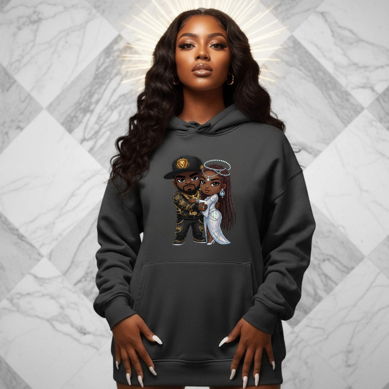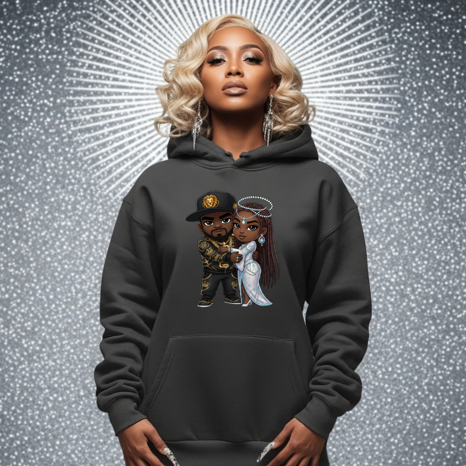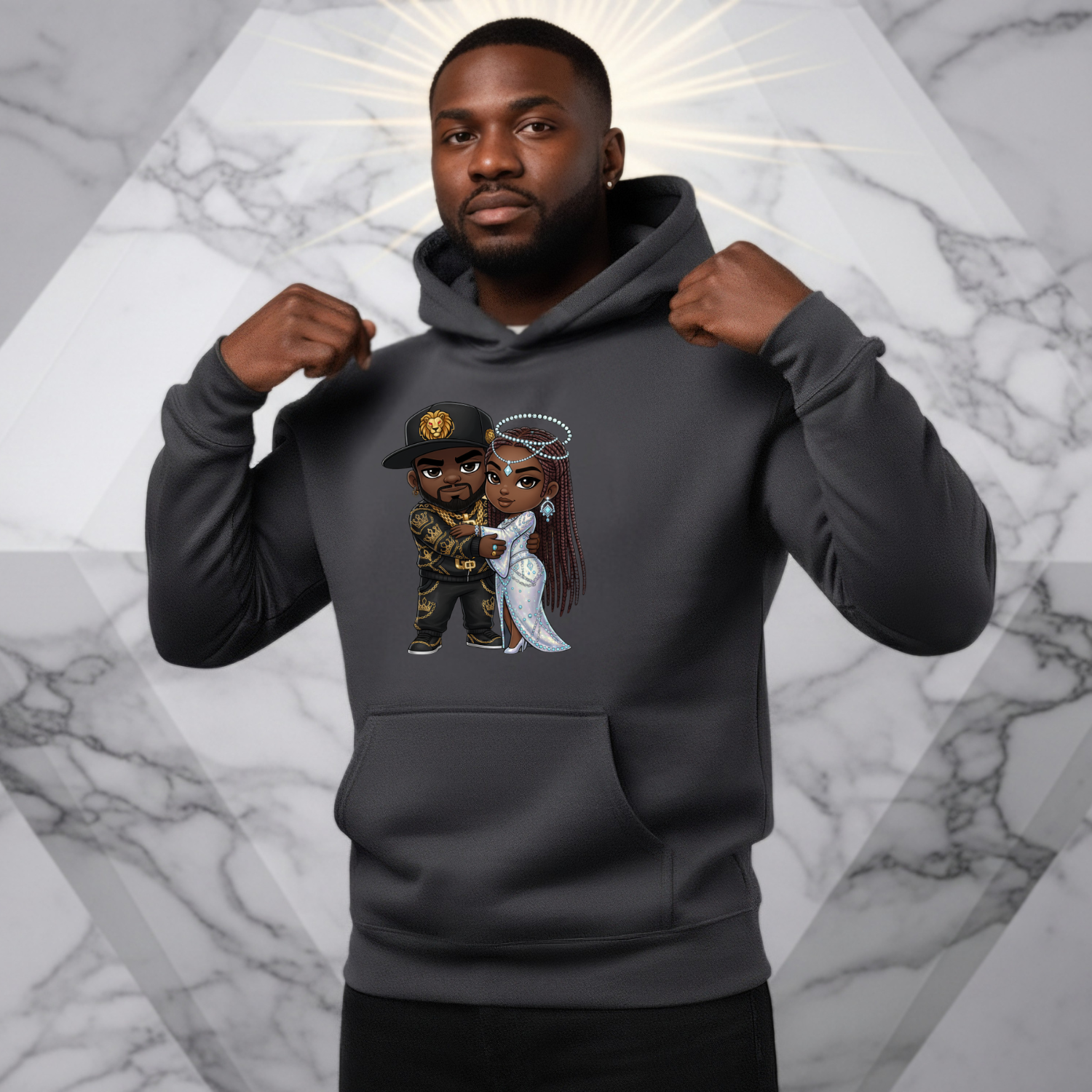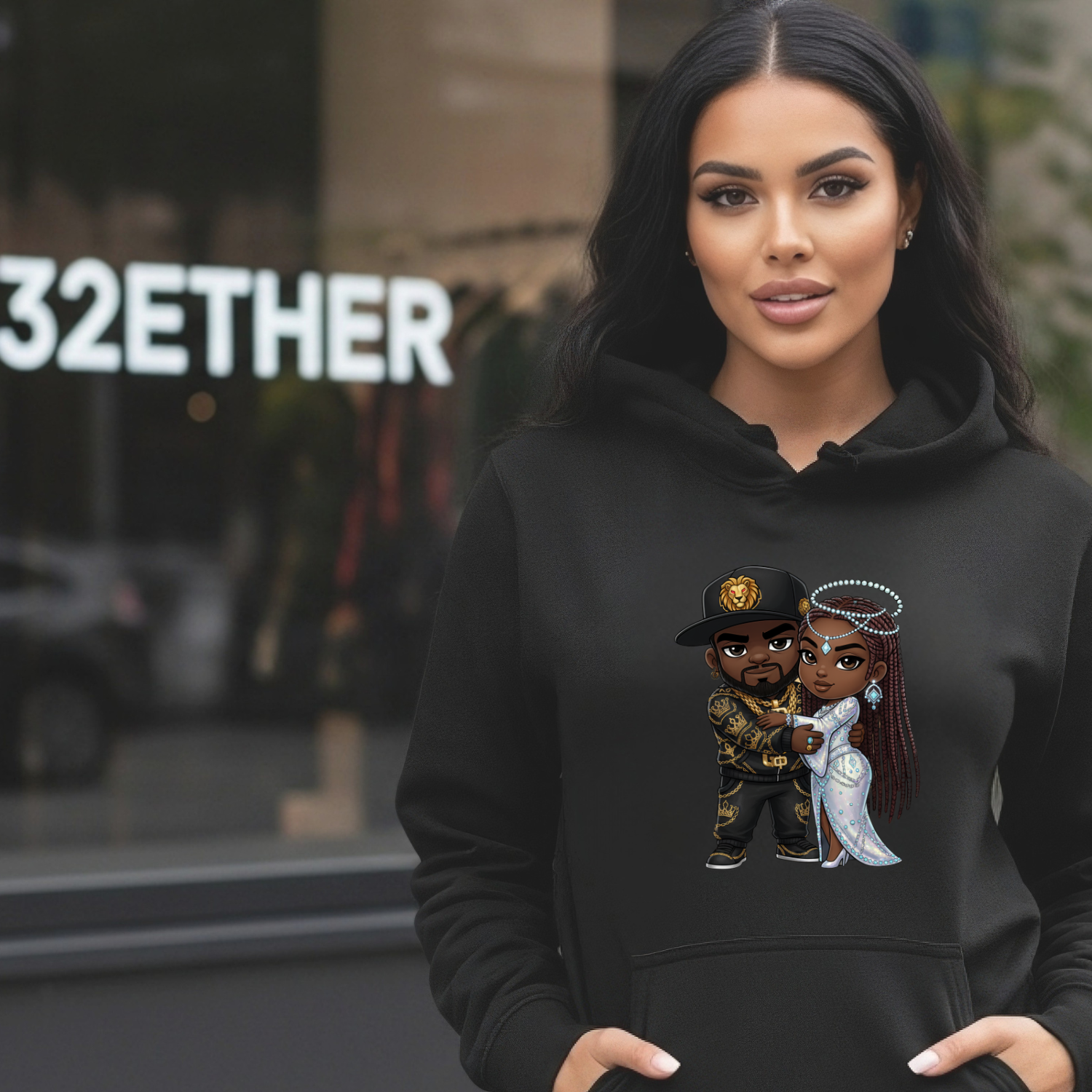 The design prints beautifully on a premium medium-heavy hoodie, with crisp detail that makes the gold textures, crystal highlights, and subtle gradients shine. Warm, durable, and statement-ready, this hoodie transforms everyday wear into high-frequency fashion.