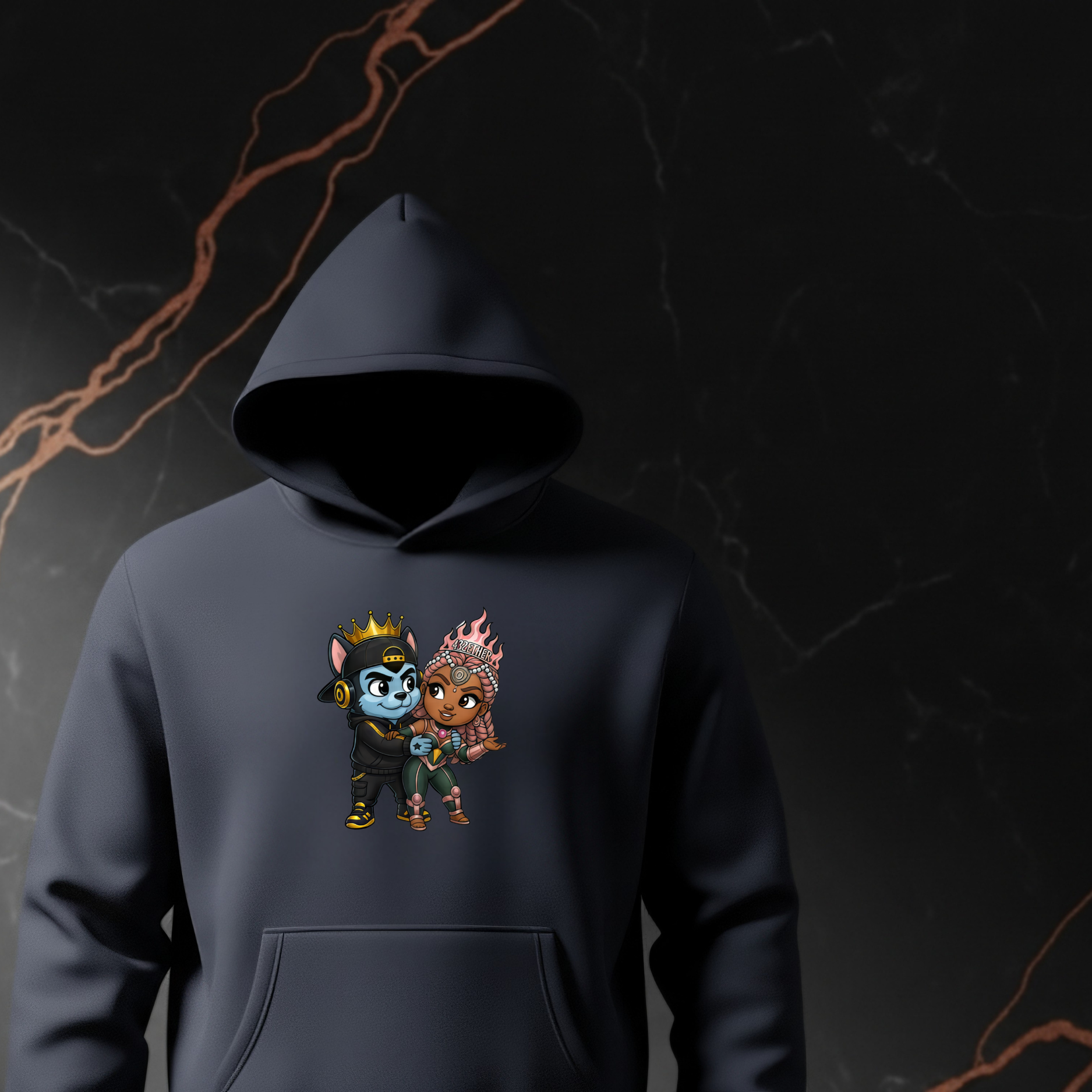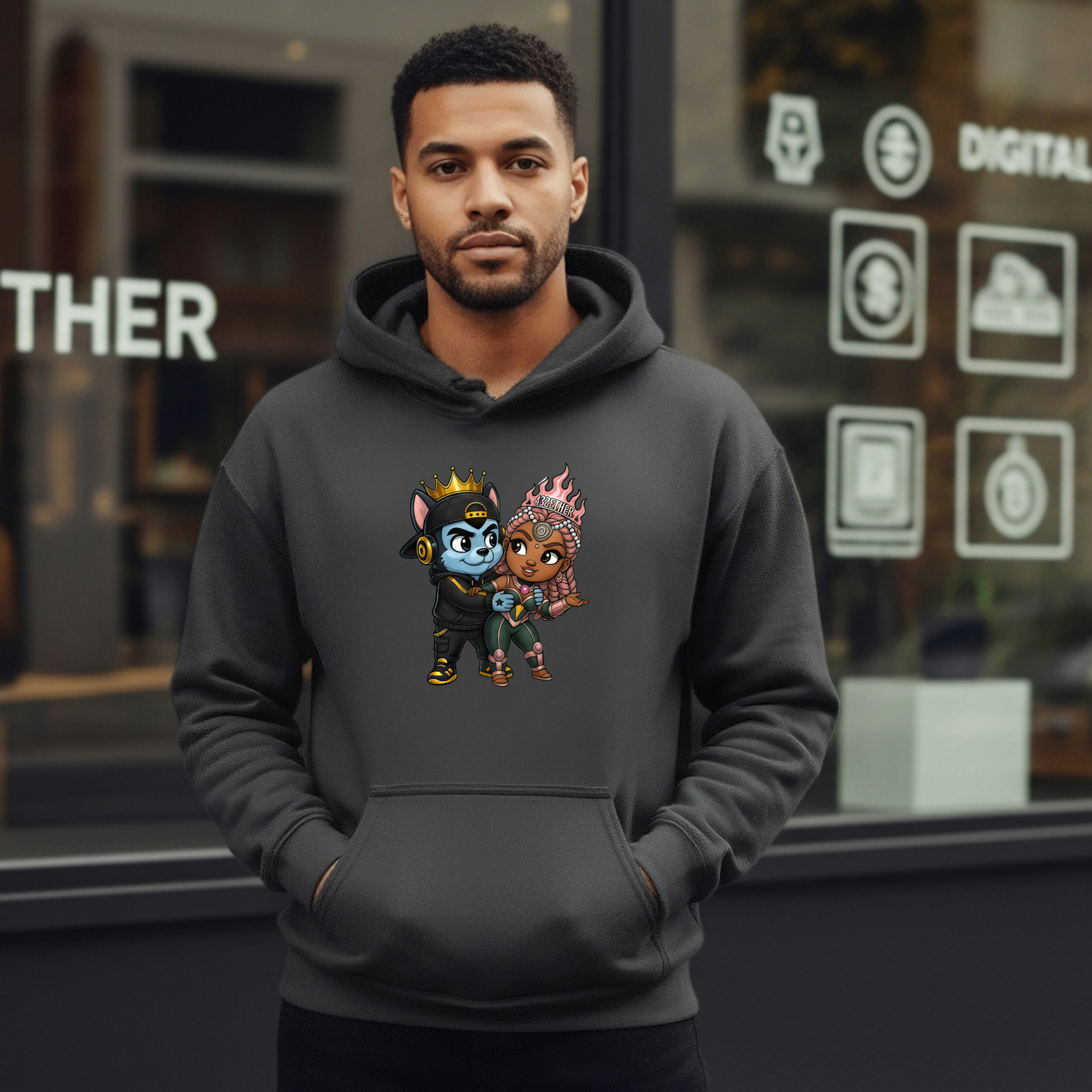 A perfect blend of street royalty and cosmic energy. This 432ETHER artwork showcases the Crowned King—draped in gold-accented streetwear—and the radiant Flame Empress, glowing with elemental aura and divine confidence. Their chemistry is bold, playful, and unmistakably powerful, capturing the essence of 432ETHER’s universe: